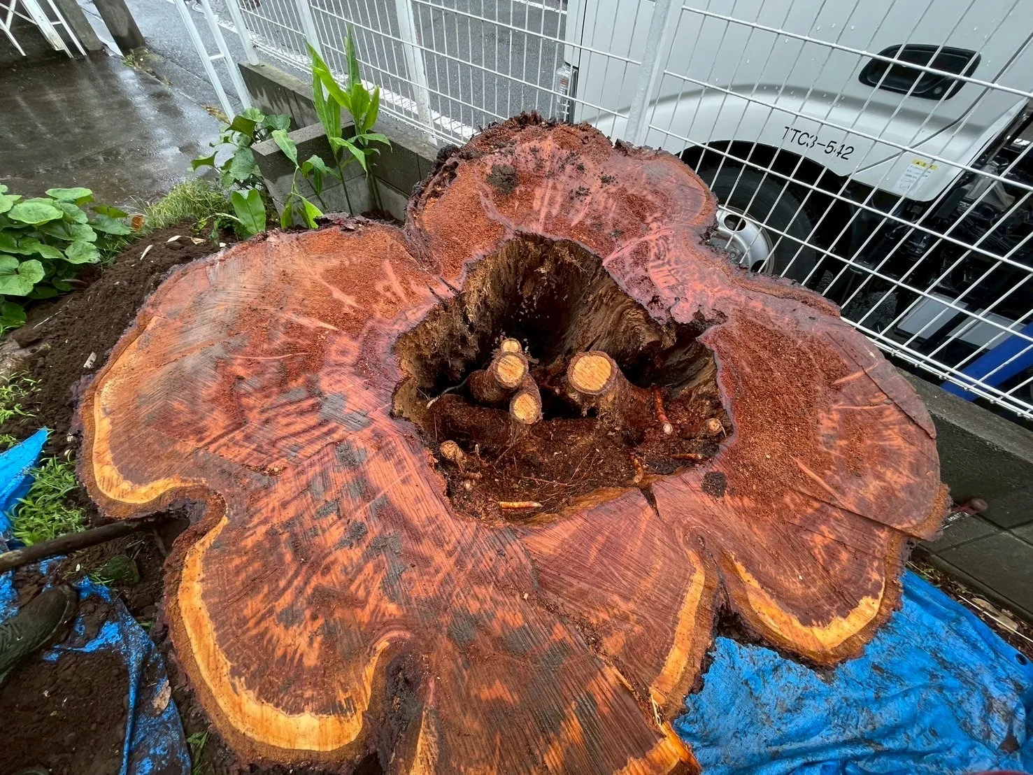 今回は傾斜木に空洞が有り、倒木する前にということでご依頼いただきました。